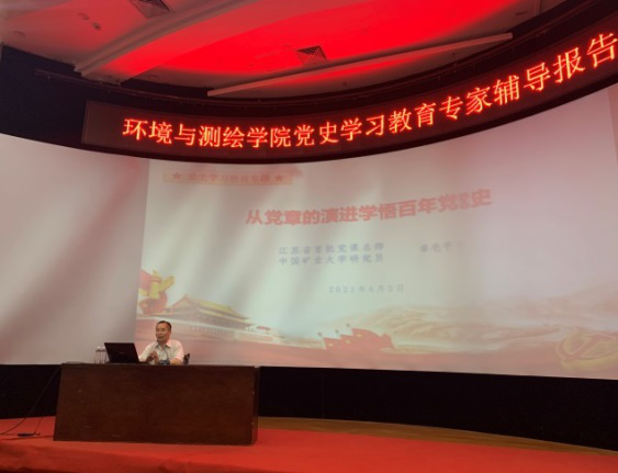 章毛平主席从党史学习教育的背景要求开始,采用了大量的史实作为论据,对党章的历史渊源、党的三个历史发展阶段中党章的修改历程、党章演进反映了党的奋斗与成就之路等三方面进行了精彩解读。章毛平主席强调,党章的历史浓缩了党的辉煌奋斗史,它是党集体智慧的结晶,是党成长过程中成功与失败经验的总结,体现了党“与时俱进”的政治品格。他勉励在场党员同学认真学习党章历史,在新时代的伟大征程中,践行初心使命、勇于担当作为,为学校和学院发展贡献自己的力量,向着实现中国梦的宏伟目标不断奋进。