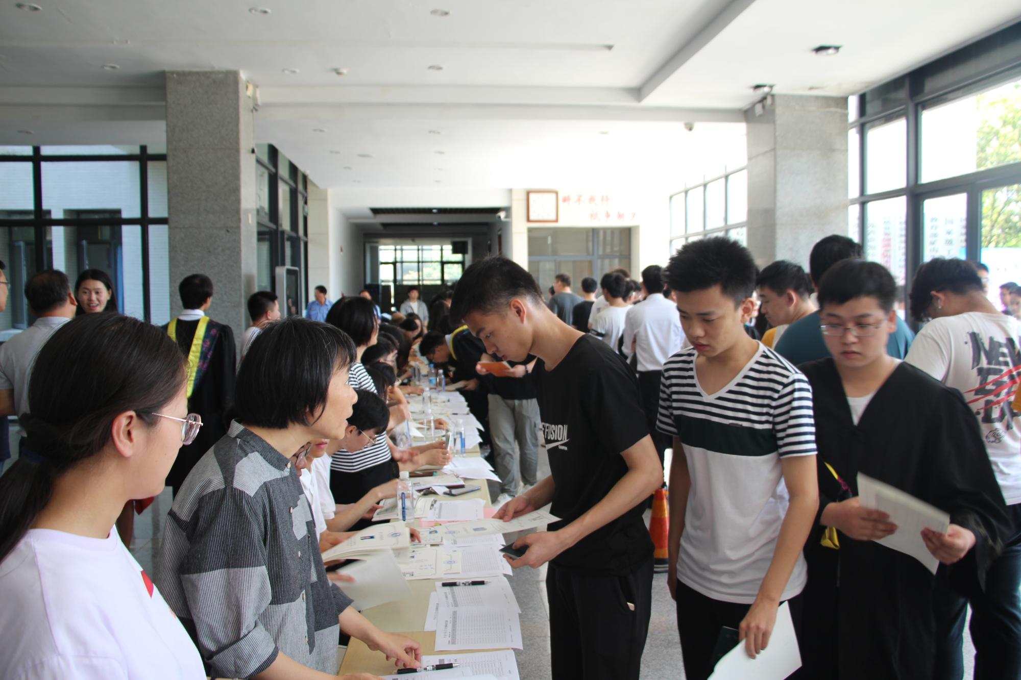 上午10点,各项工作有条不紊地开展,学院教职工于办公桌上摆放指引牌和离校手续材料,到场毕业生自觉有序排队,依次办理各项手续。从信息查询、学生证注销,到户口迁移证、毕业证、学位证的发放等各项手续,现场工作人员耐心帮助毕业生解决问题并叮嘱注意事项。期间,院党委副书记韩福顺前来了解工作进展情况,对离校手续办理工作进行指导。学院在环测楼前设置了合影留念墙,供毕业学子合影留念,让环测学子在离校之际充分感受到学院领导老师的关心与照顾。本次联合办理离校手续工作极大地方便了毕业生,受到毕业生的广泛称赞。