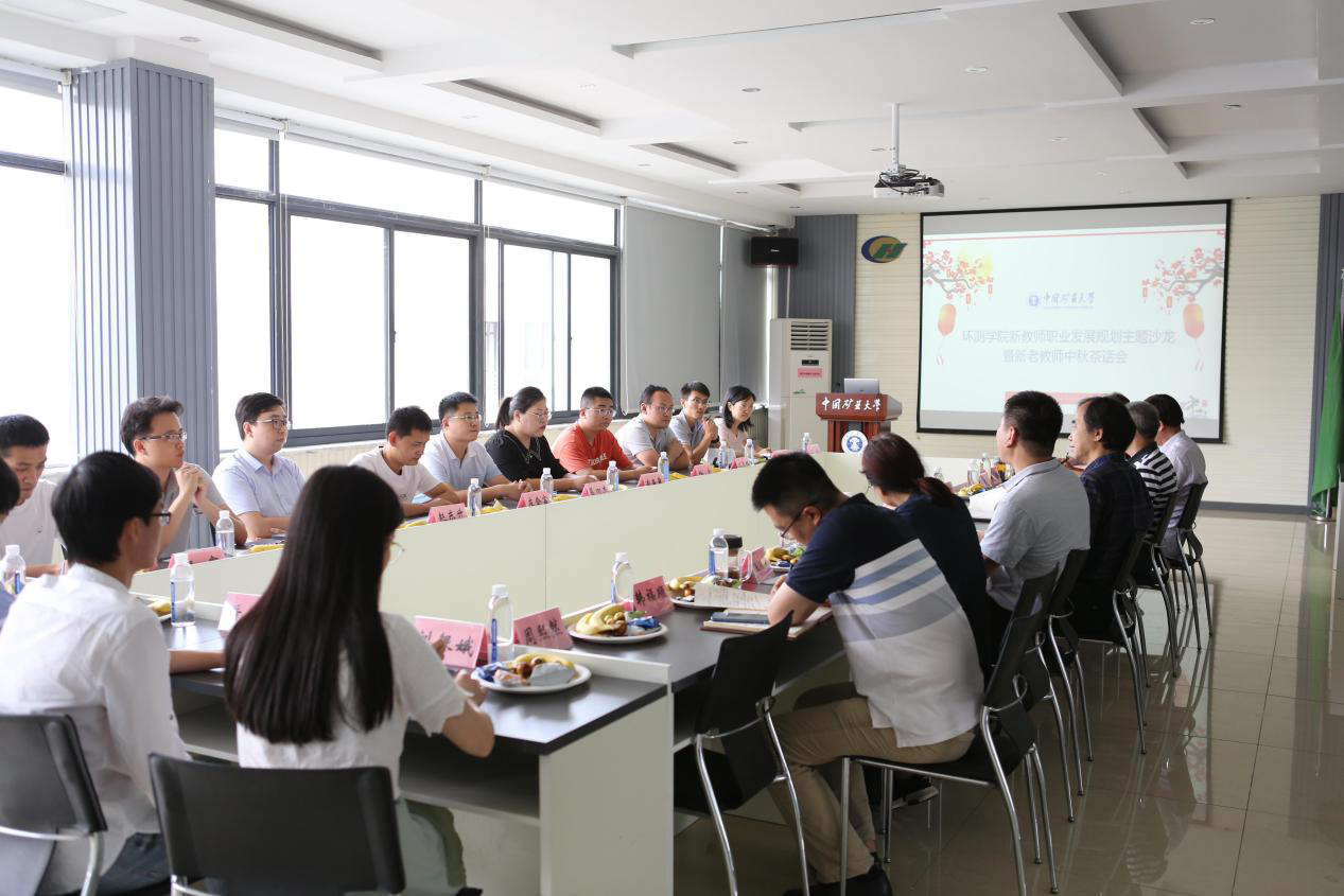 在学院楼A512会议室召开新教师职业发展规划主题沙龙暨新老教师中秋茶话会。院党委书记王守刚,执行院长郑南山,党委副书记韩福顺,明升体育