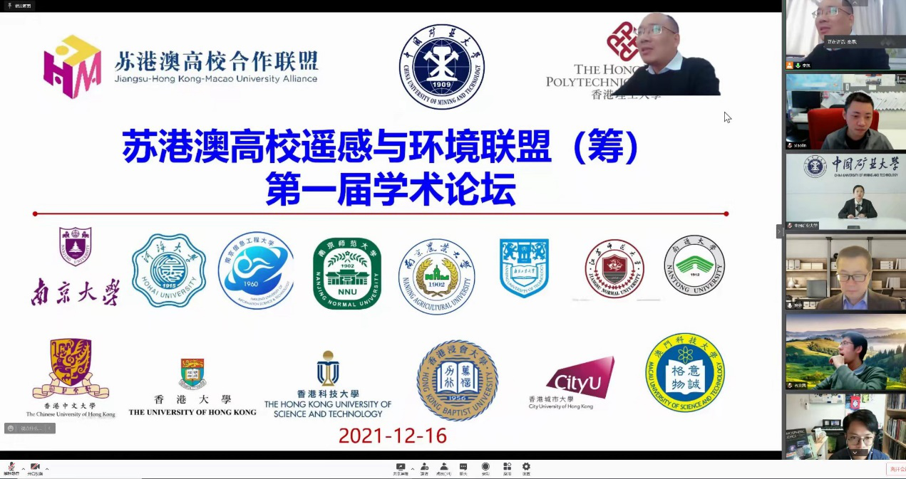 12月16日下午,苏港澳高校遥感与环境联盟(筹)第一届学术论坛召开。本次论坛由苏港澳高校合作联盟主办,我院和国际合作交流处共同承办。论坛采用线上方式进行,并通过寇享学术平台进行同步直播。来自中国矿业大学、南京大学、河海大学、南京信息工程大学、南京农业大学、南京工业大学、江苏师范大学、南通大学、香港理工大学、香港大学、香港中文大学、香港科技大学、香港浸会大学、香港城市大学、澳门科技大学等15所高校的40余名教师参加了论坛,就能源与环境遥感大数据、城市热岛、大气与农业及森林相互作用、高光谱遥感、时序遥感、城市遥感、城市气象、智慧农业等方面,带来了10场精彩报告。论坛由明升体育
