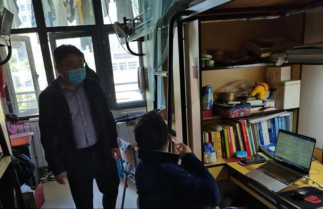 检查期间,郭东副院长提醒同学们在学习的同时不要忘记要健康作息、积极锻炼,并告诫同学们要严格遵照消防安全相关规定,建立健全常态化值日制度,杜绝宿舍内抽烟现象。赵华副主任表扬了在宿舍认真学习的同学,并提醒他们卫生工作要细心细致,排除死角,做好公共区域的值日管理,及时通风换气。