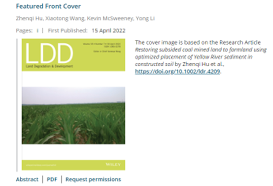 教师胡振琪教授在矿山复垦土壤重构方面成果在国际期刊《Land Degradation & Development》发表封面论文。