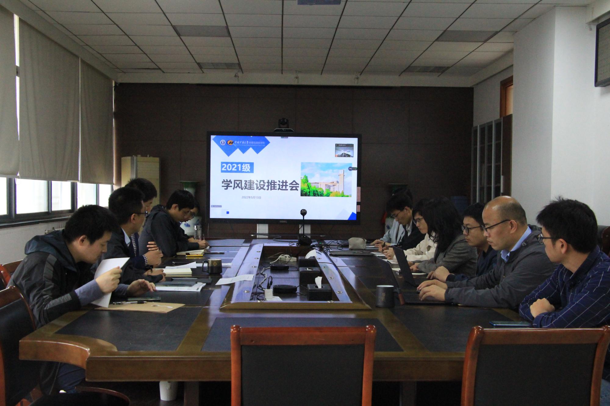 于学院楼A506会议室开展学风建设推进会,院党委书记王守刚、党委副书记韩福顺、2021级优才辅导员李艳萍及2021级各班班主任参加会议。