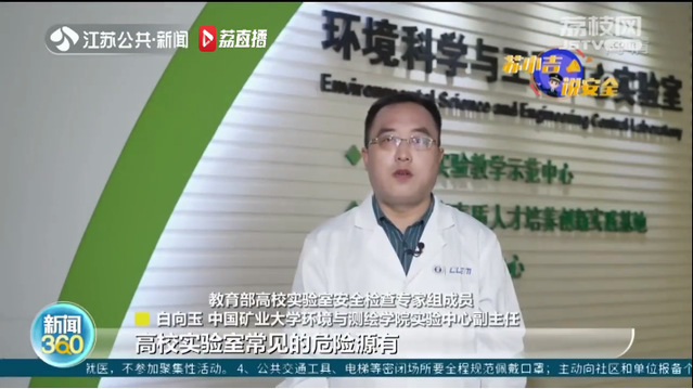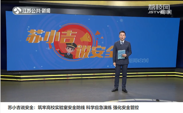 近日,江苏省应急管理厅、江苏省教育厅和江苏公共新闻频道共同推出“苏小吉说安全”系列报道,我校作为3所受邀高校之一参与了首期节目“筑牢高校实验室安全防线,科学应急演练,强化安全管控”的录制,分别在《新闻360》和《早安江苏》栏目中播出。