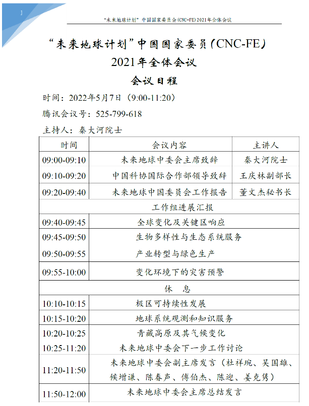 2022年5月7日,未来地球计划中国国家委员会2021年全体会议召开,明升体育