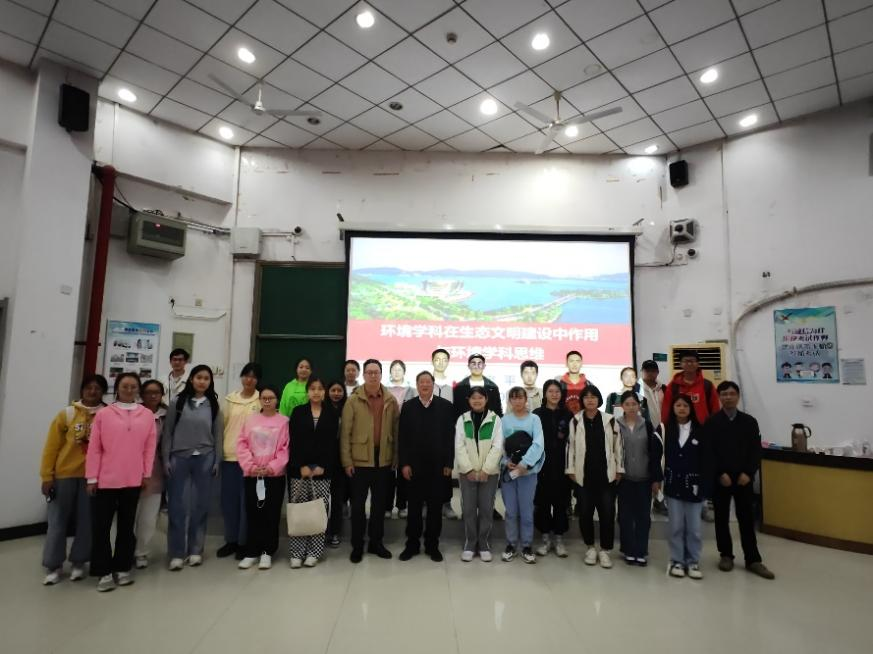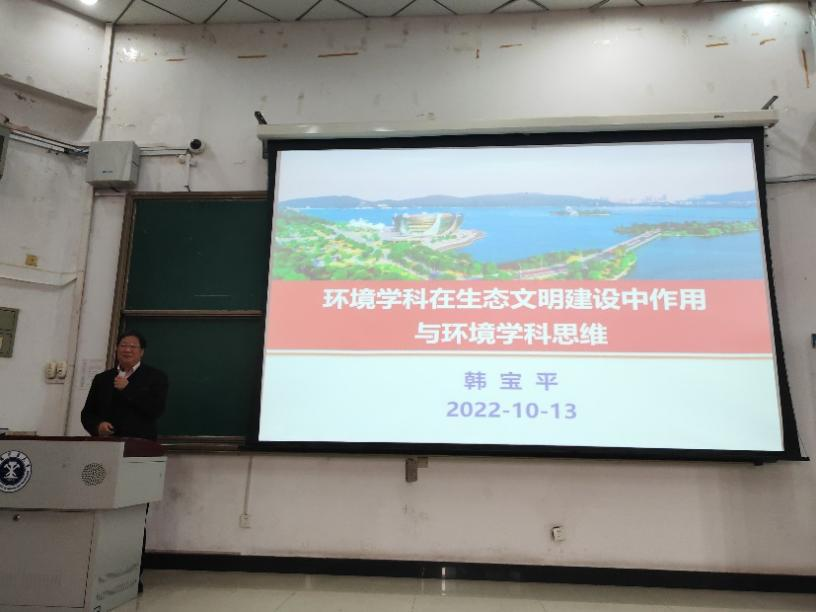 副院长周来主持,环境学科部分教师、研究生新生、本科生新生等参加了报告会。