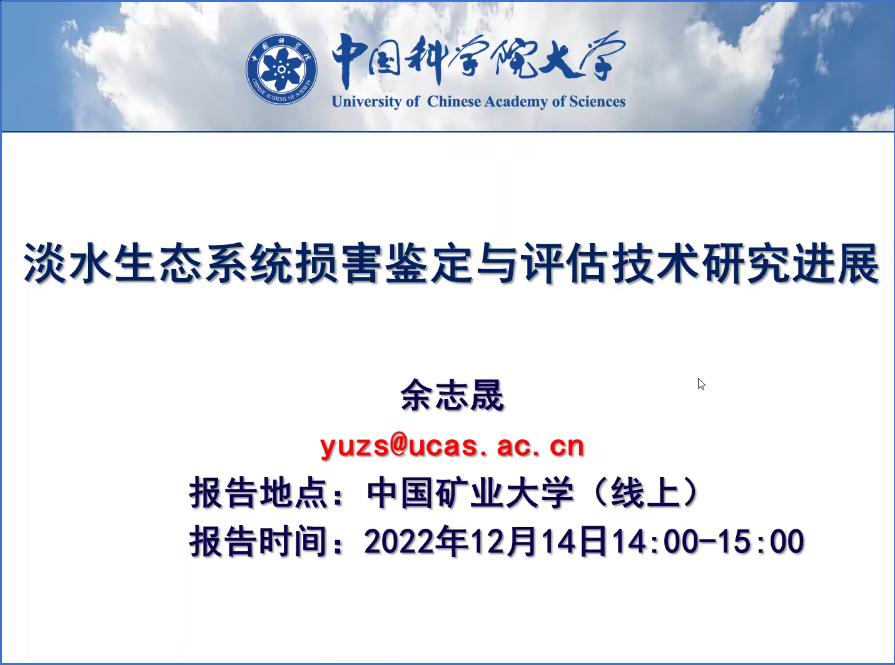 以腾讯会议的方式举办了环境论坛第五期学术报告会,邀请中国科学院大学资源与环境学院余志晟教授作了题为淡水生态系统损害鉴定与评估技术研究的报告。报告会由何士龙教授主持。