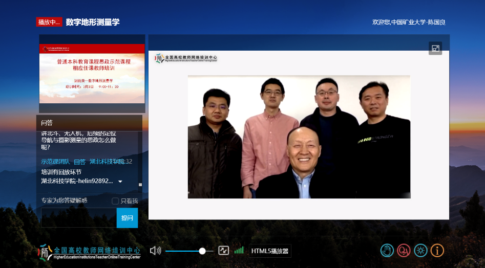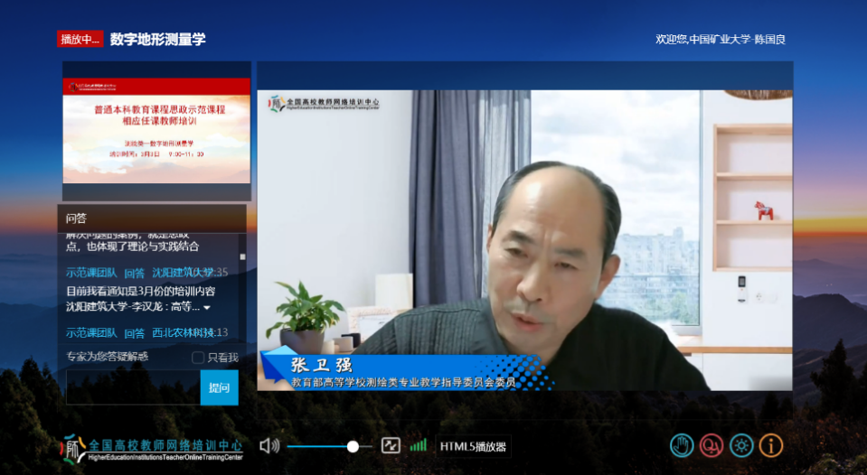 《数字地形测量学》思政示范课程由高井祥教授领衔,张书毕、郑南山、陈国良、李增科、张秋昭、王永波、王中元、卞和方等11位教师共同参与,经过近半年的精心准备,于3月3日上午上线并面向全国高校教师开启直播。通过说课示范、案例教学、专家点评、学员互动等形式,分享了团队在课程思政的资源挖掘、教学设计、课堂教学、教学研究等方面的经验做法,推动了全国高校相应课程任课教师理解和把握本专业类课程思政教学的内涵和要求,提升了一线教师课程思政教学能力,受到了参训教师的普遍认可。