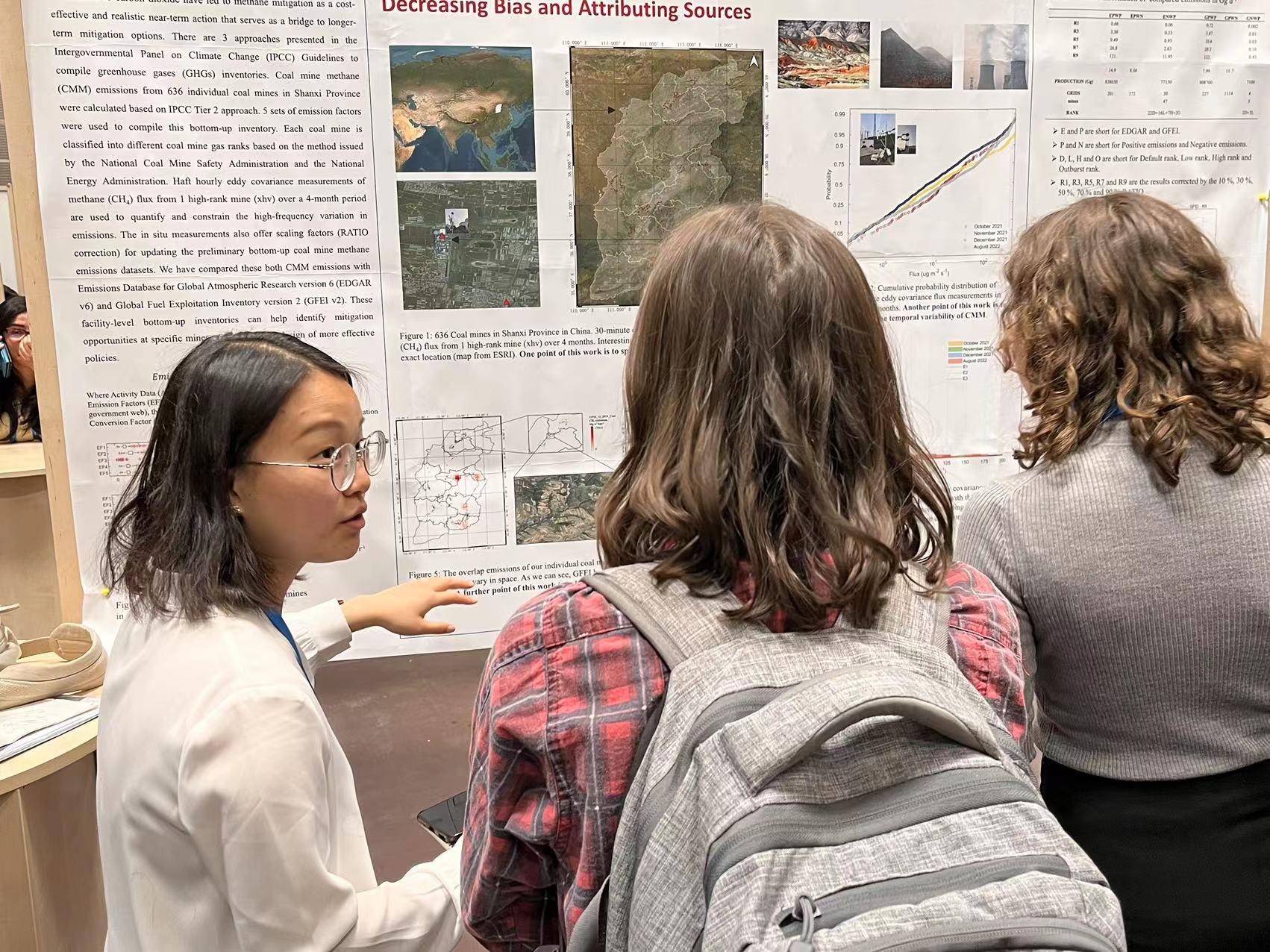 博士生胡玮同学在“Quantification of anthropogenic methane sources through atmospheric measurement studies: Finding targets for mitigation worldwide”专题张贴了题为“Chinese Coal Mines Methane Emissions Constrained by High-Frequency Measurements”的学术海报。