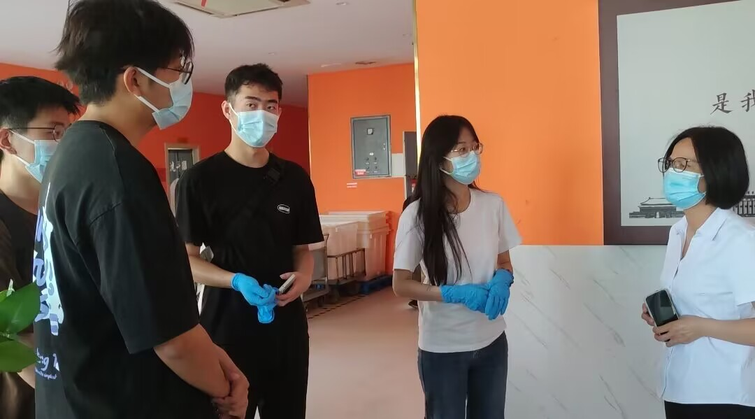 楼A104为同学讲述生物多样性调查及叶脉书签制作方式;由蒋家超、张传义、肖昕、杨德军等教师与同学共同讨论确定校园垃圾分类调查工作安排。