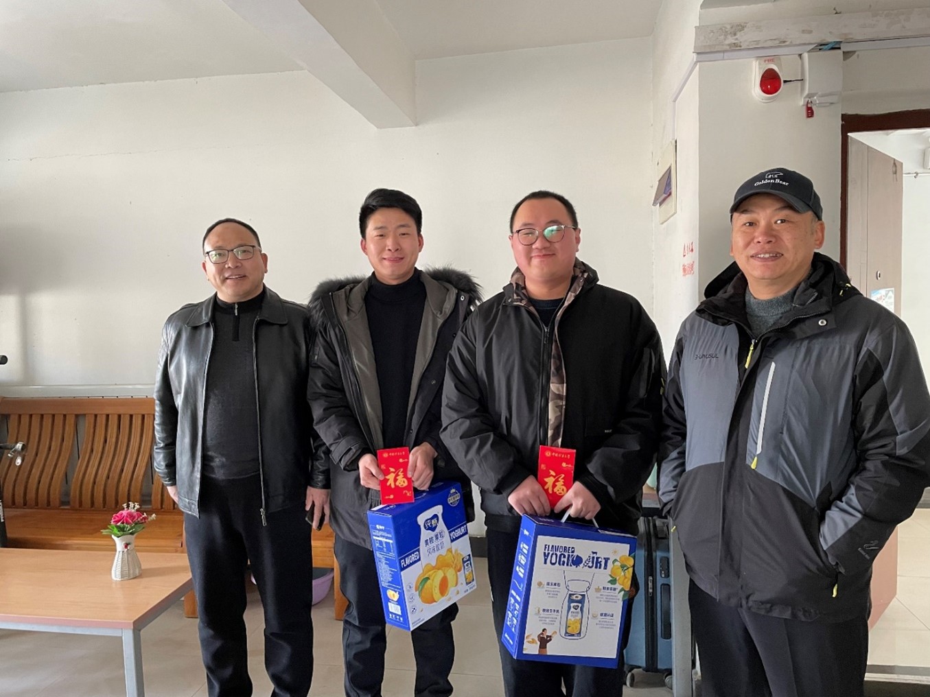 走访期间,老师们亲切询问了明升体育 留校过年学生寒假期间的学习生活安排情况,提醒做好宿舍和实验室的安全防范工作,送上春节祝福,并代表学校学院向每位留校学生派发了慰问礼物,留校学生对学校学院领导老师的关心关爱表示衷心感谢。随后,杨政军老师和留校学生们在学校一食堂参加集体慰问活动,并共进团圆午餐。