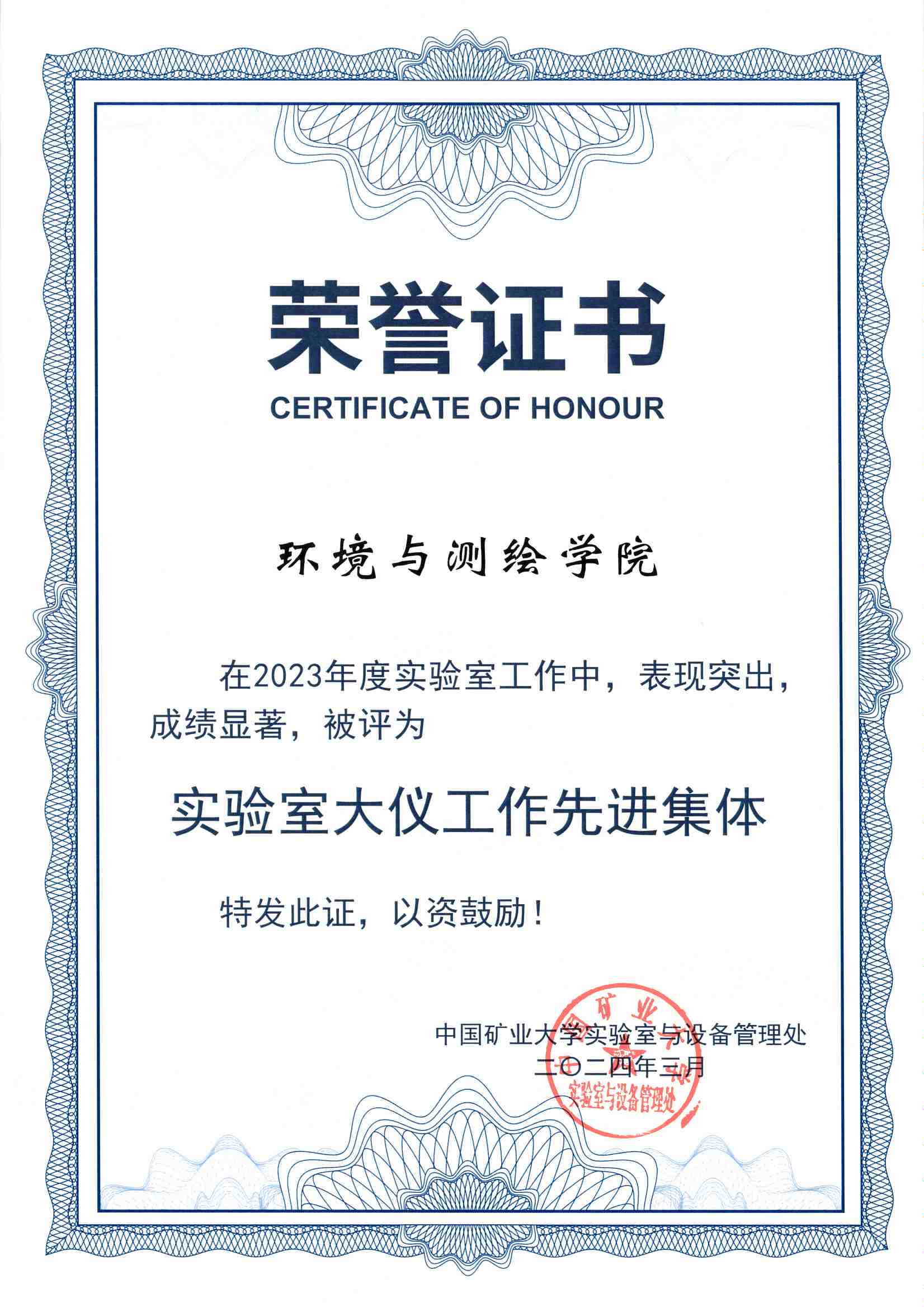 实验中心荣获2023年度实验室大仪工作先进集体,郭东副院长荣获支持实验室工作好领导,蔡先娈老师荣获优秀实验中心秘书,白向玉老师荣获优秀实验室安全员,张洪建老师荣获优秀大仪共享管理员,仇春平老师荣获优秀实验教学辅助人员。