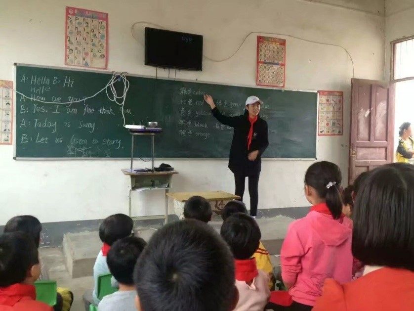 在2016年10月,她开始了人生的第一次支教,虽然只是短短几天,却给她以后的人生带来了很大的改变。她和社团的小伙伴们去到的是安徽省涡阳县的一所山村小学,给贫困地区的孩子们带去VR博物馆设备,送上教学生活必需品,并向孩子们传授一些基础知识,激励他们好好读书,期待他们成人成才。在和孩子们的交流过程中,孩子们清澈的眼神,还有对外面世界大大的疑问都让她更加想要把自己的所见所闻所感分享给孩子们。也是从那时起,她在心底给自己一个期许:以后一定要用更长的时间来进行支教。