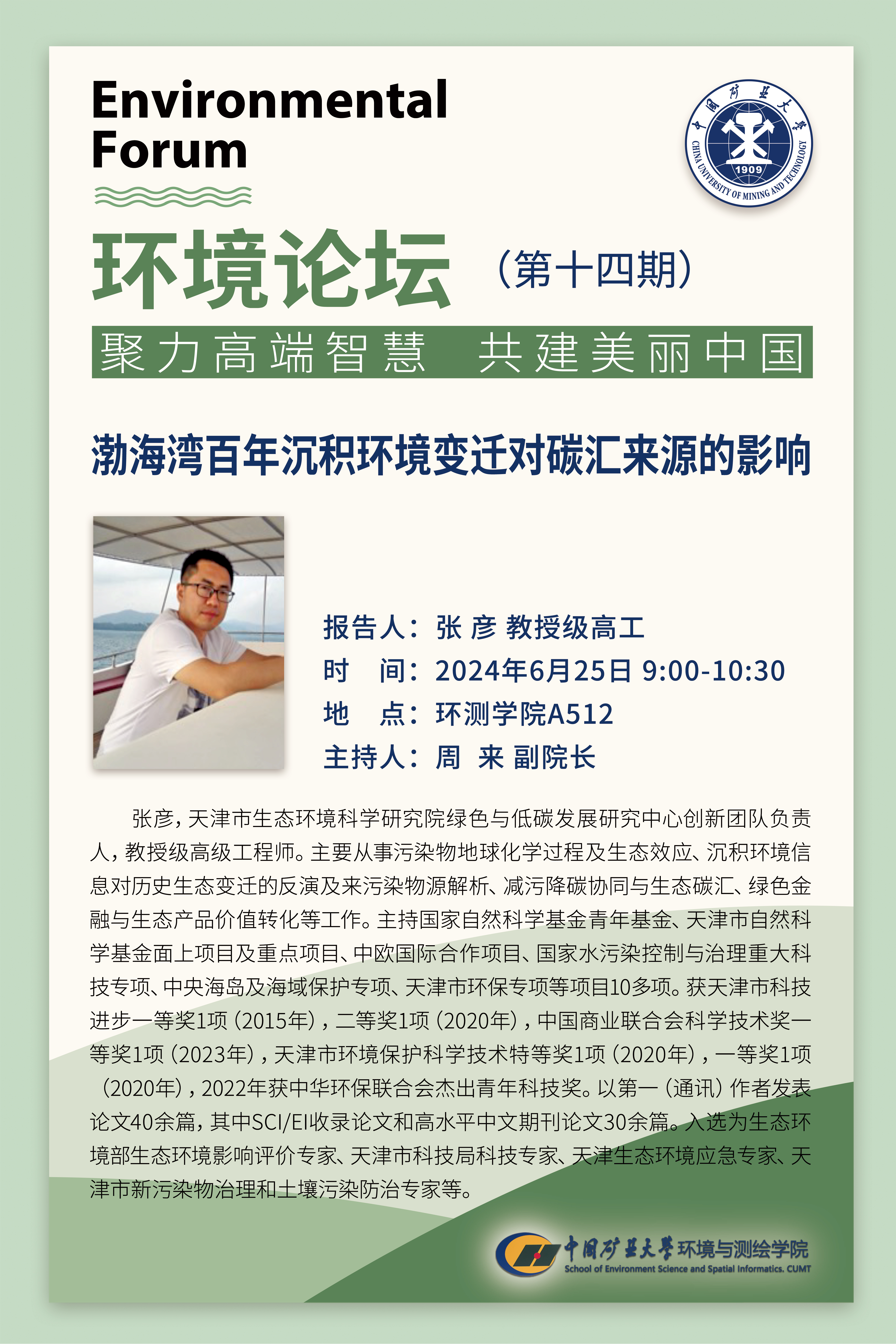 环境论坛(第十四期)渤海湾百年沉积环境变迁对碳汇来源的影响