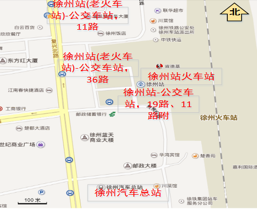 方案2:徐州高铁站 - 乘坐10路 - 徐州站(蓝天)站下车 - 步行至徐州站(老火车站)或徐州站,然后参照徐州站火车站 的乘车方案至会场。