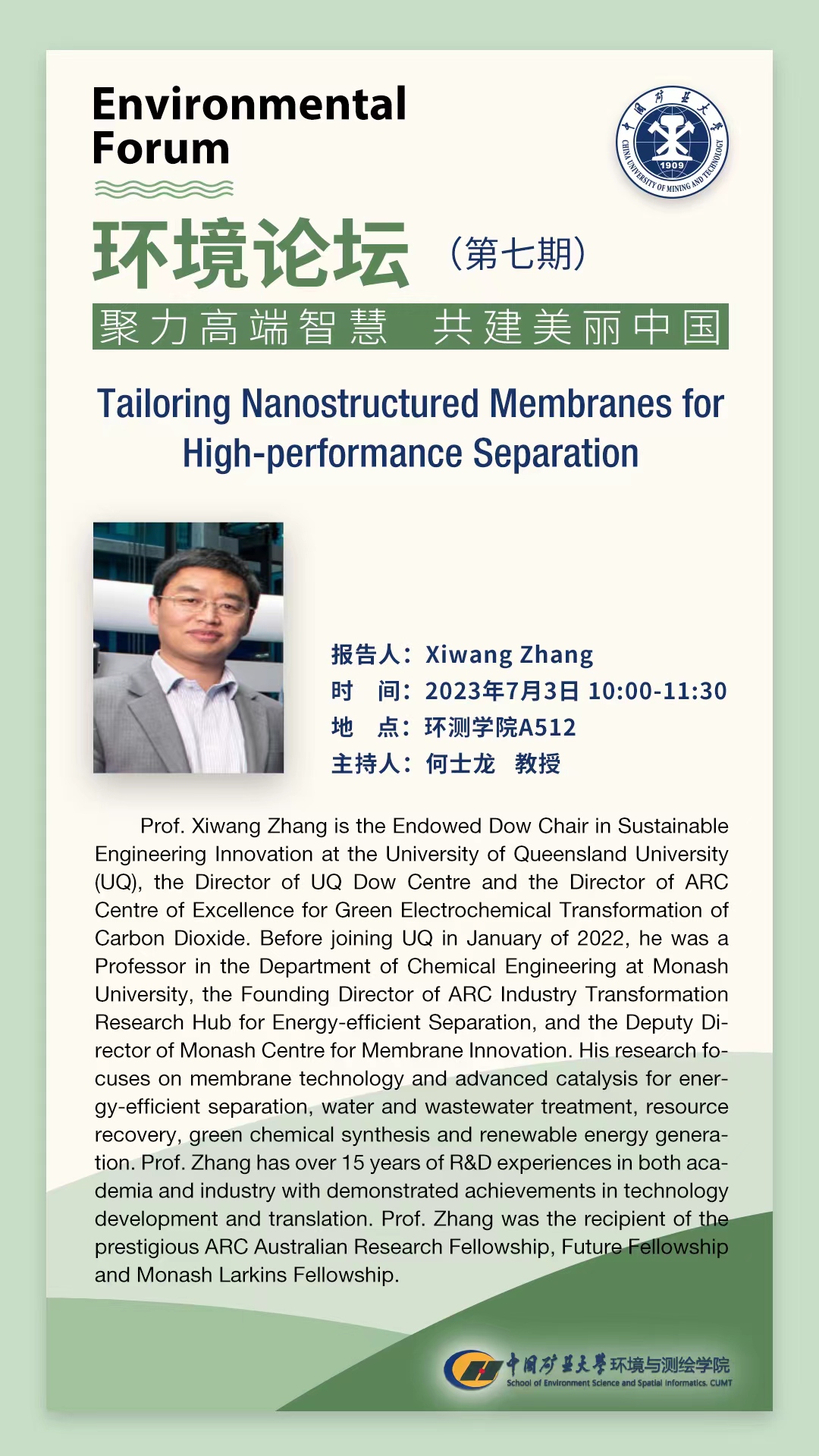 环境论坛(第七期)Tailoring Nanostructured Membranes for High-performance Separation