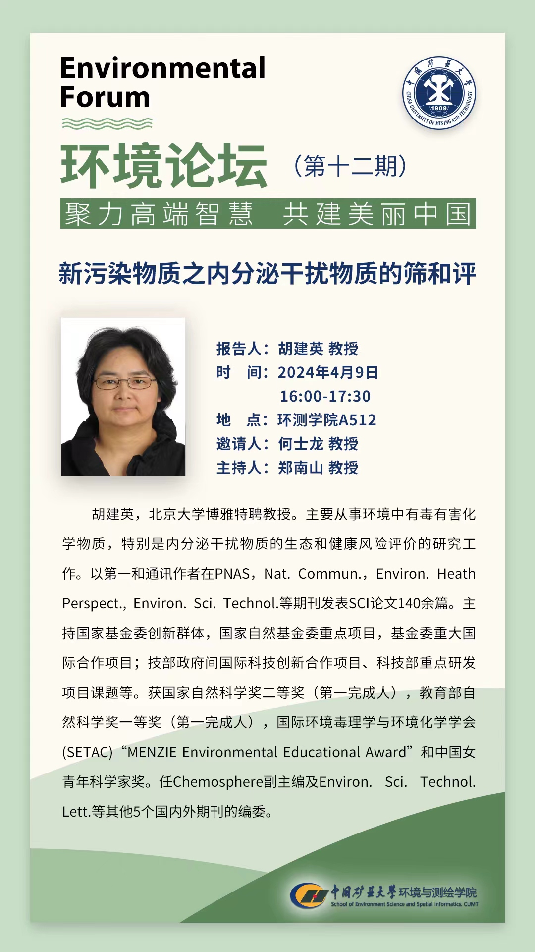 环境论坛(第十二期)新污染物质之内分泌干扰物质的筛和评