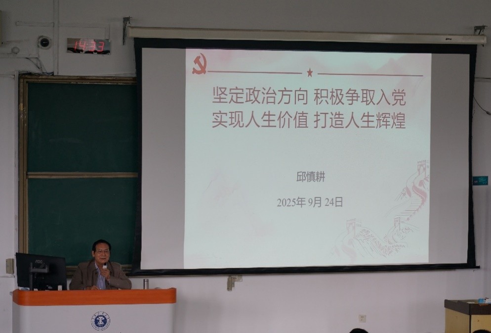 关工委常务副主任邱慎耕为2025级本科新生讲授入党启蒙教育课。