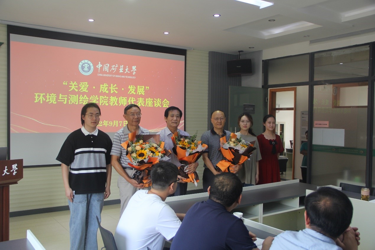 在教师节来临之际,大四优秀学生代表为邱慎耕、高井祥和邓喀中三位老教师代表献花。与会教师代表从自身科研、教学和生活等方面出发,交流了个人成长经历、目前发展困惑和相关工作建议,表示将尽快融入学院发展共同体,以更多优异的教学科研成果促进学院专业建设和学科发展工作。
